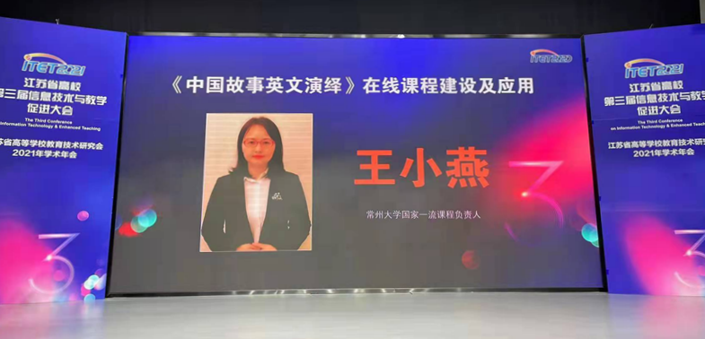 近日,由江苏省教育厅指导、江苏省高校微课教学比赛组委会主办,江苏省高等学校教育技术研究会承办的2021年江苏省高校微课教学比赛结果公布,我校获一等奖2项,二等奖3项,三等奖3项。应主办方邀请,外国语学院教师王小燕作为获奖代表在江苏省高校第三届信息技术与教学促进大会(ITET2021)暨江苏省高等学校教育技术研究会2021年学术年会上作主题发言。