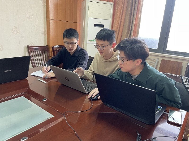 一等奖获奖团队备赛中(左起 黄宁 陈思炜 许浩)