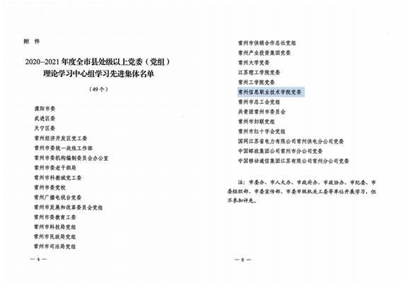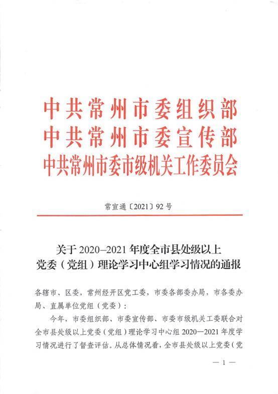 日前,常州市委组织部、市委宣传部、市委市级机关工作委员会发文对2020-2021年度全市县处级以上党委(党组)理论学习中心组学习先进集体进行通报表彰,我校党委理论学习中心组荣获该项荣誉,成为在常高职院校中唯一获此殊荣的先进集体。