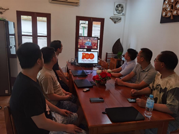 12月3日,中老铁路通车,他把党员学习会议扩大为团组全员会议。通过观看视频、学习习近平总书记讲话精神,让团组成员深刻认识、积极拥护党的领导,同时通过交流感想,为今后进一步指导中老项目落地实施提供智囊。