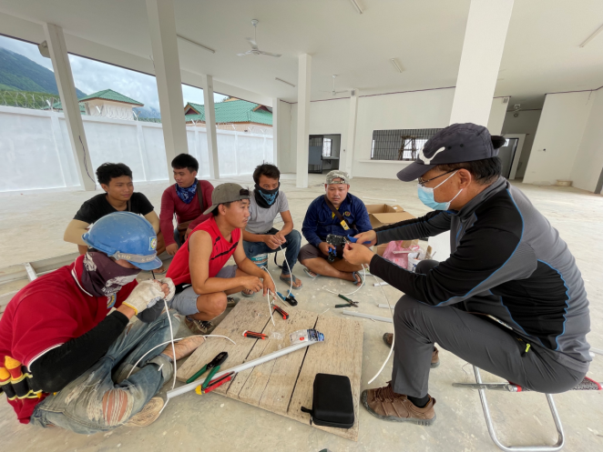 作为项目组专家,姚裕宝老师不仅倾力指导施工建设,竭尽所能助力项目顺利竣工,保证设备质量过关、运行通畅,还开发了专业培训标准及课程标准,并付诸实施,为后续老挝学员的培训设计了简便易懂清晰的学习方案。