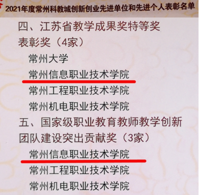 过去的一年,学校全面贯彻党的教育方针,坚持立德树人根本任务,深入开展党史学习教育,围绕“质量立校、质量育人、质量立业”,以党建质量提升引领学校高质量发展和“双高计划”建设,同时聚焦教学质量提升关键环节,构建课程、课堂、人才、管理“四轮驱动、精准施策、多维发力、持续提升”的教育教学新生态,各项发展要素迅速向质量领域集聚,成功入选第二批全国高校黄大年式教师团队、第二批国家级职业教育教师教学创新团队,荣获首届全国教材建设奖一等奖2部、全国教材建设先进个人1人、全国职业院校技能大赛教学能力比赛一等奖1项、江苏省教学成果特等奖、一等奖、二等奖各1项,喜夺中国国际“互联网+”大学生创新创业大赛国赛三连金、全国职业院校技能大赛一等奖3项,为学校十四五高质量发展开创了良好开局。