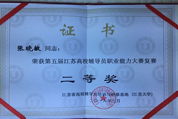近日,第五届江苏高校辅导员职业能力大赛复赛(镇江、常州、无锡赛区高职组)在江苏大学落下帷幕。经校内初赛选拔,我院经贸系辅导员张晓敏代表学校参赛,最终获得复赛二等奖,总分第三名。