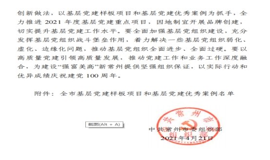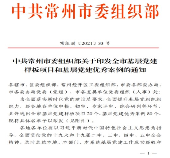 近日,中共常州市委组织部印发《全市基层党建样板项目和基层党建优秀案例的通知》(常组通〔2021〕33号),我校化工与制药工程学院党总支申报《红色教育融入育人底色,打造学生党员教育体系》案例获评常州市基层党建优秀案例。