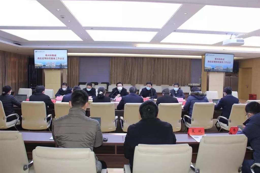 1月31日上午,市委常委、统战部部长、科教城党工委书记韩九云督查科教城园区高校疫情防控工作。韩九云现场督查了机电学院门卫、值班室、留学生宿舍和纺织服装学院门卫、留学生宿舍等,并召集园区6所高校主要领导召开常州科教城高校疫情防控督查工作会议,听取高校情况汇报,部署疫情防控有关工作。