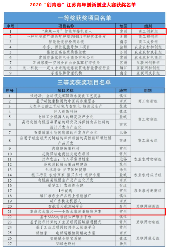 学校《“蜘蛛一号”小型智能焊接机器人》《集成式水准尺-全新水准测量解决方案》两个项目经过共青团常州市委推荐参赛。备赛、比赛期间,创新创业学院、团委、智造学院、建工学院师生团队认真准备、积极参赛。参赛选手面对众多创业“前辈”,以大学生的身份与之同场角逐,毫不逊色。经过激烈的比赛,《“蜘蛛一号”小型智能焊接机器人》获得商工创新组一等奖,《集成式水准尺-全新水准测量解决方案》获得互联网创新组三等奖。